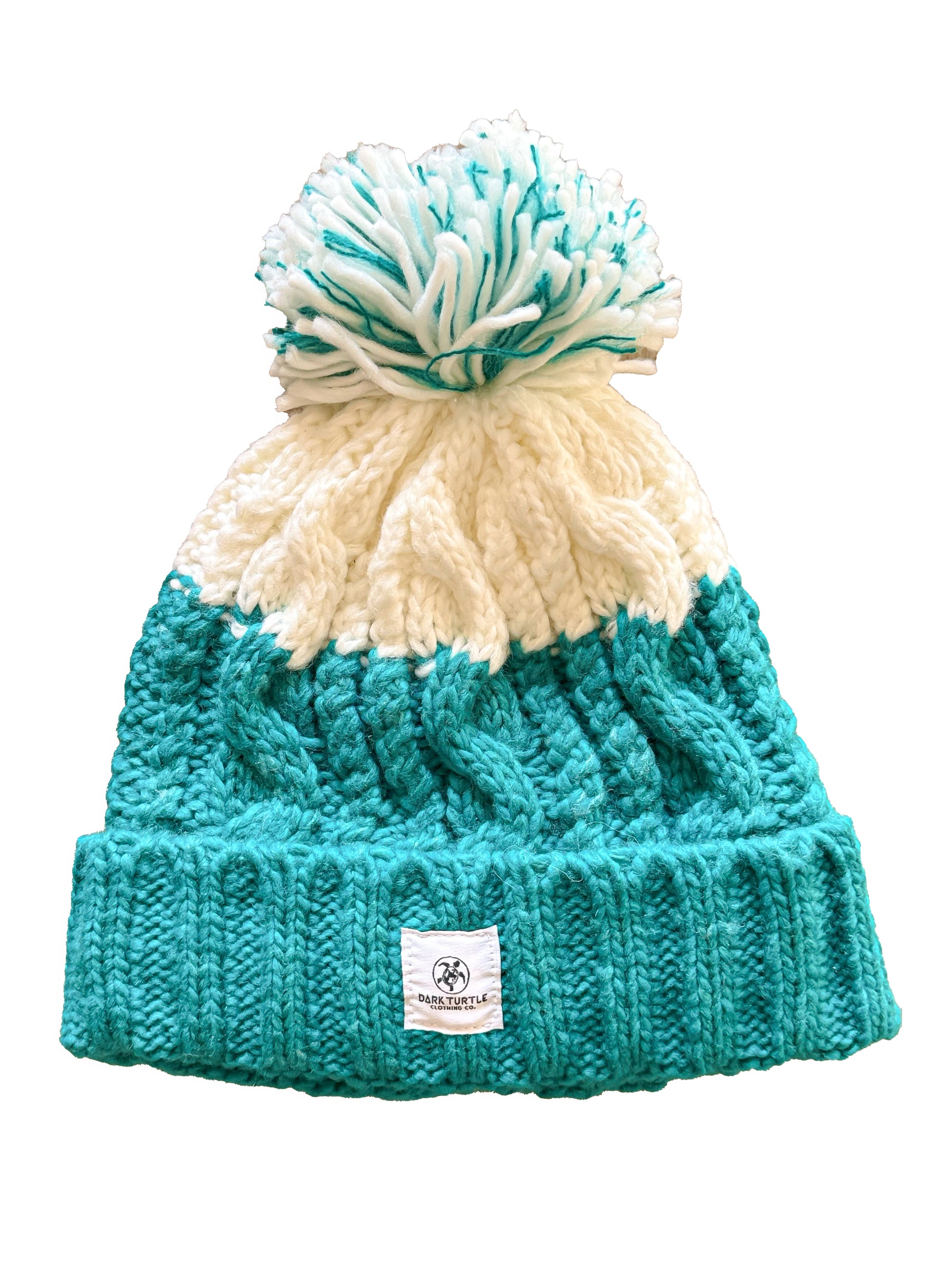 Our Unisex handmade Apres Surf Bobble Hat in emerald and white is warm but light multi-yarn knit bobble beanie. The luxurious fleece shearling gives you extra warmth on those colder days and is perfect if you’re going for a skate, if you’ve just paddled in, spent the day on the slopes or carved it out on the mountain trails.