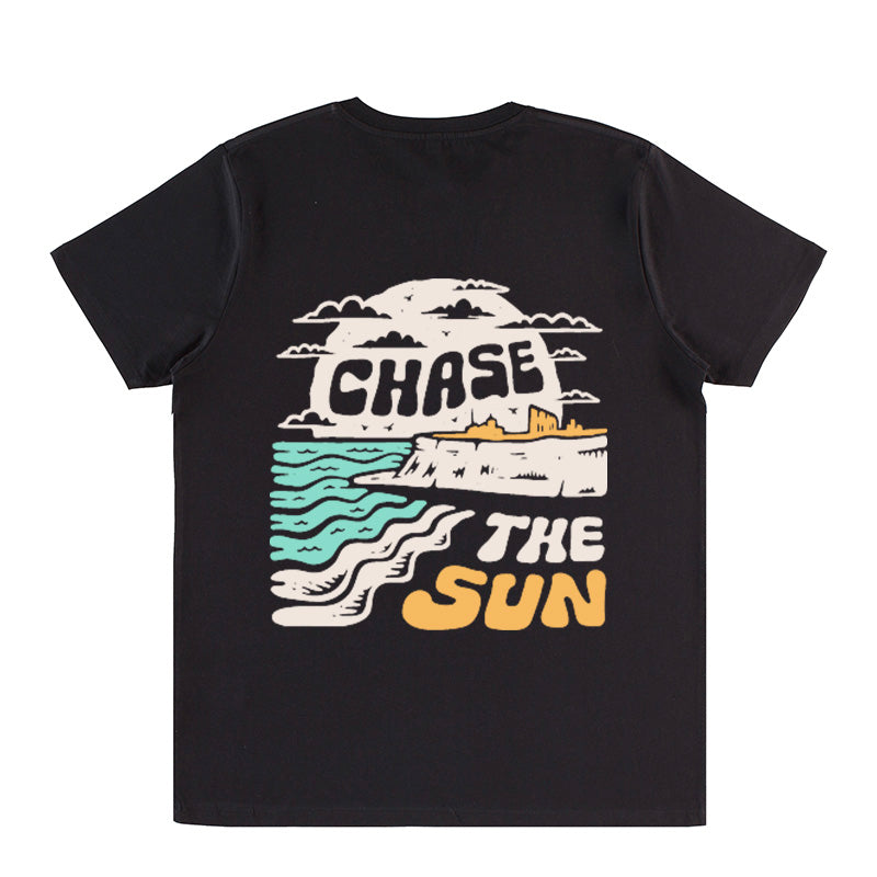 Our “Chase the Sun” Tee is short-sleeved t-shirt made from sustainable materials that combines comfort with durability. Round neckline with logos printed on the chest and rear.